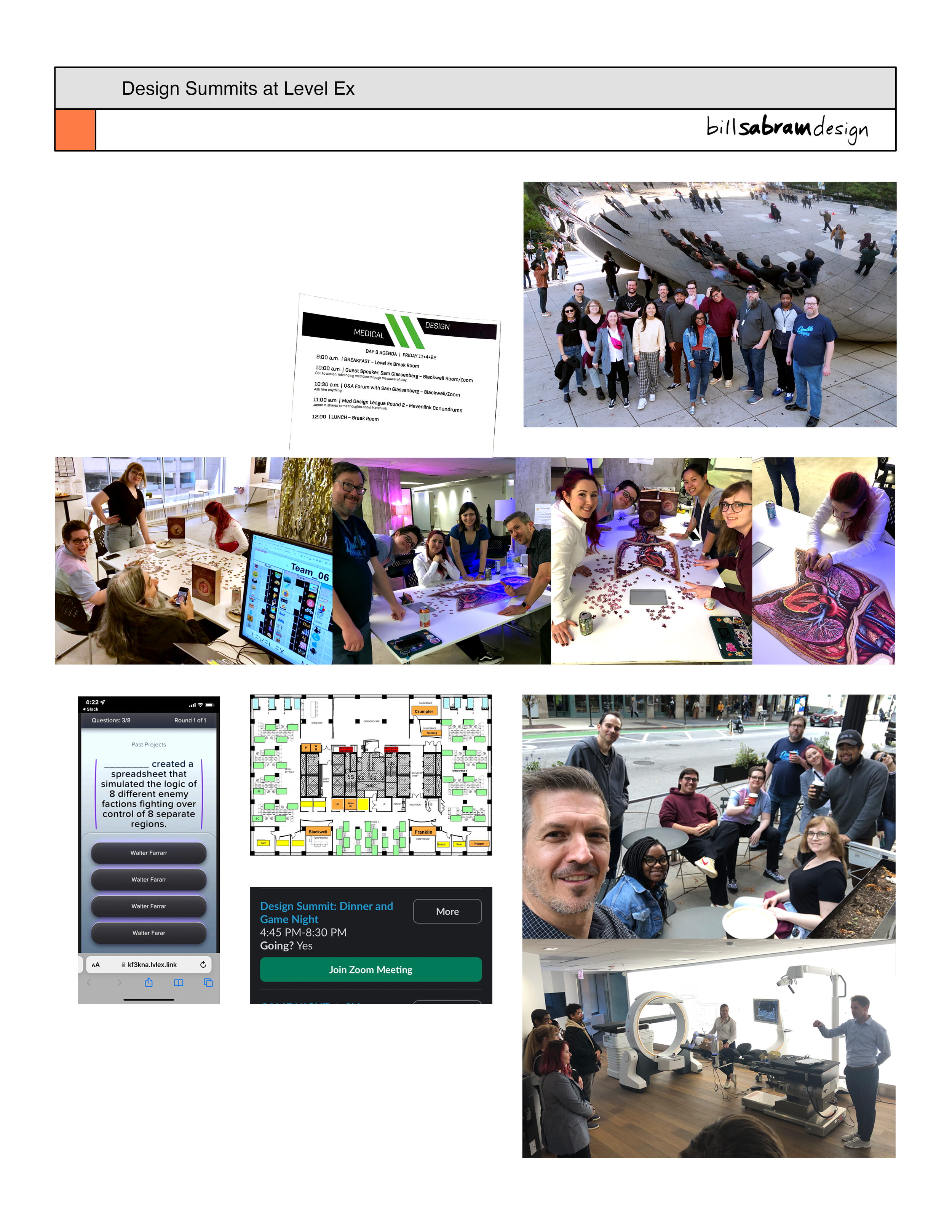 The Med Design Summits weren't just team meetings with a nicer backdrop. They were crafted experiences with field trips, breakout sessions, hands-on play, and the kind of late-afternoon Coffee Walk that resets a room and reminds people why they showed up. I designed them so that contributing felt rewarding, remote-only attendees felt visible, and the studio's identity generated pride that people wanted to internalize.
